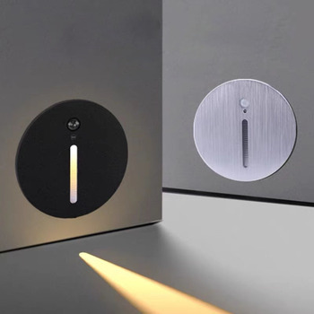 88mm círculo Led Sensor paso luz 3W 3000K marco de aluminio cepillo plata negro blanco gris dormitorio lámpara de noche Hotel pasillo interior