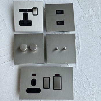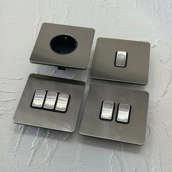 86 interruptores de palanca de luz de metal montado en la pared Panel de acero inoxidable níquel mate Reino Unido EUEuropean French Universal TYPE-CSocket Dimmer