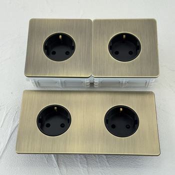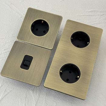 Interruptores de palanca de luz montados en la pared Marco de acero inoxidable de bronce verde retro 172*86 UE AU 16aEnchufe UNIVERSAL europeo USB TYPE-C