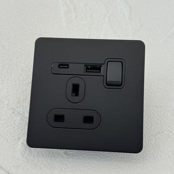 86 interruptores de luz de palanca montados en la pared Panel de acero inoxidable MATE Negro DOBLE REINO UNIDO 13A 2,1 a USB/enchufe universal de oficina