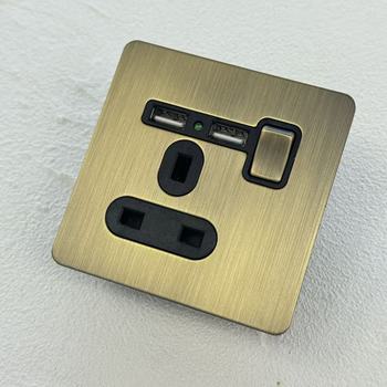 146 doble 1 Gang UK 13A enchufe Usb/tipo-c interruptor de luz montado en la pared para el hogar Retro verde bronce palanca de acero inoxidable 86 2.1a 250V