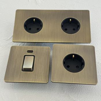 86 interruptores basculantes de latón antiguo estilo retro montados en la pared marco de acero inoxidable UK13A Enchufe europeo UNIVERSAL